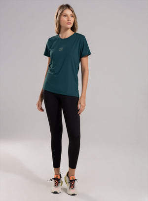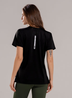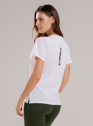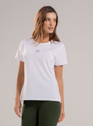 Camiseta básica deportiva de manga corta y con leves aberturas en los costados (zona ruedo).