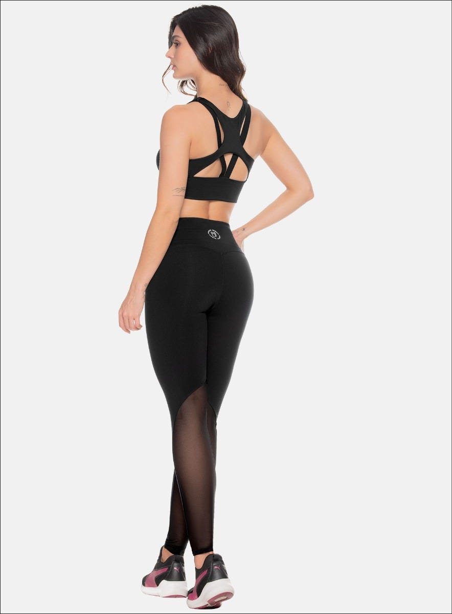LEGGINS DEPORTIVO CON OJALETES TERMOSELLADOS EN PRETINA Y PASA CORDON, CON CORTE EN MALLA EN LA PIERNA POSTERIOR