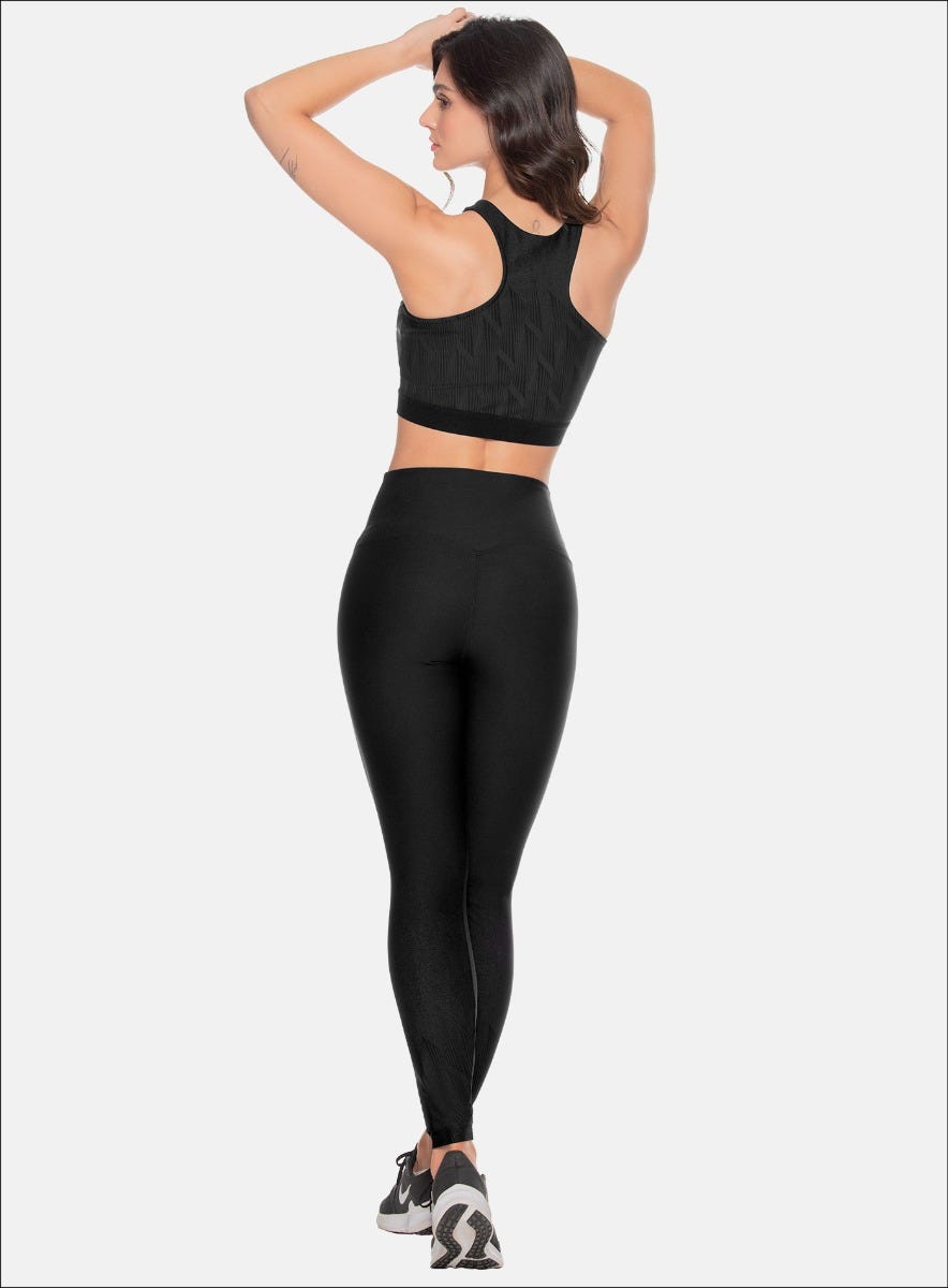 - Leggings deportivos elaborados con tela Jacquard, con detalles en contraste en las botas, aportando un diseño moderno y atractivo.