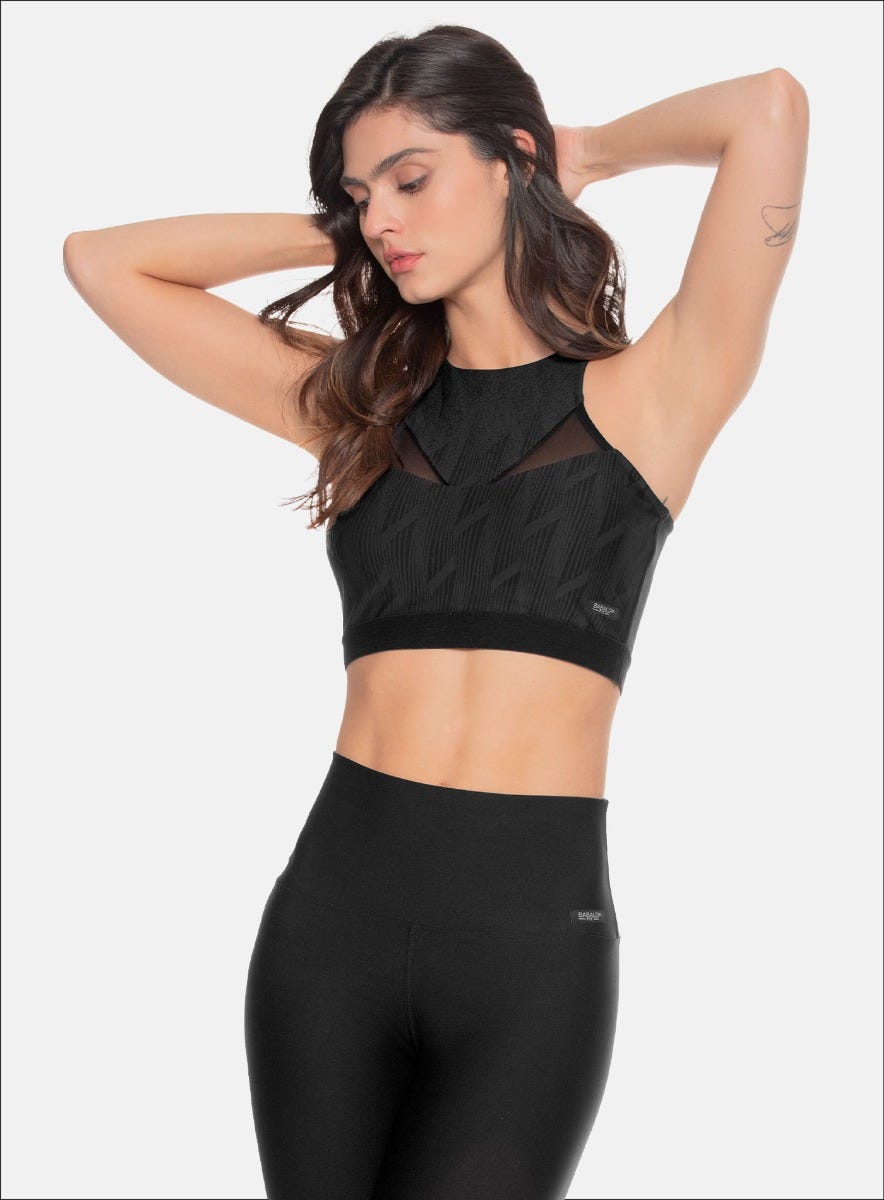 TOP DEPORTIVO EN TELA JACQUARD CON SULIMADO EN FIGURA GEOMETRICA