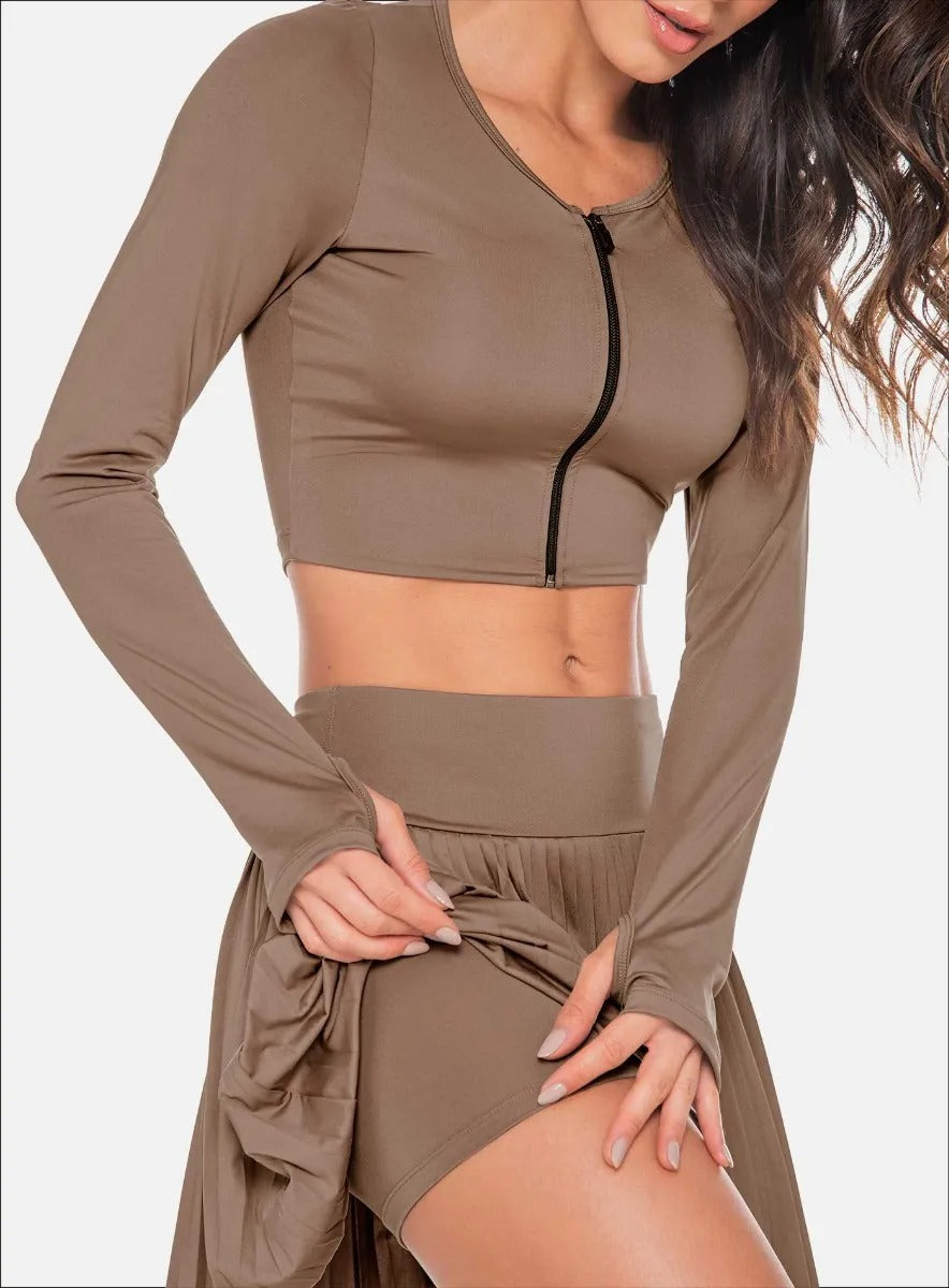 FALDA DEPORTIVA PLISADA CON PRETINA ALTA Y SHOR INTERNO PROTECTOR