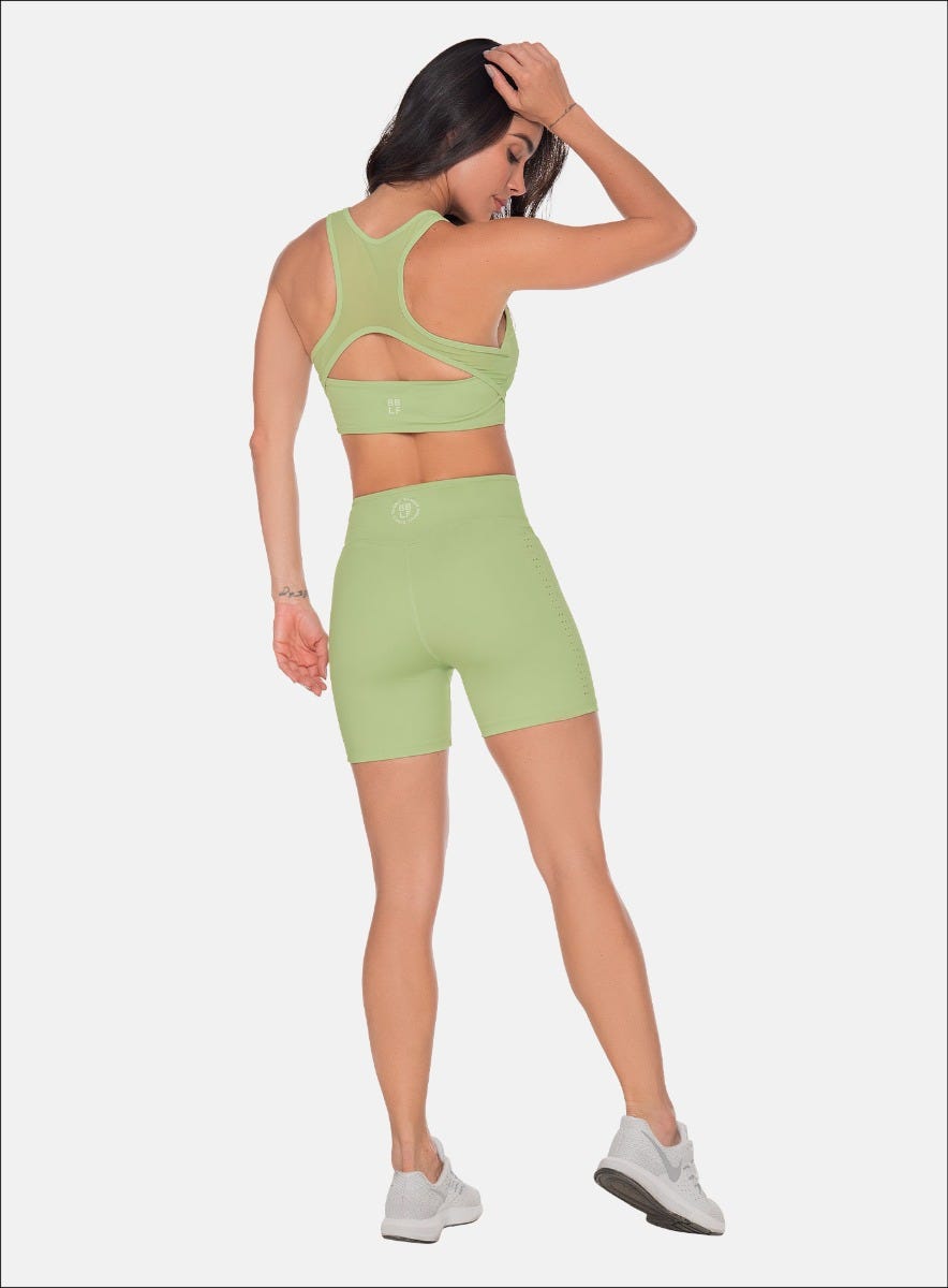 SHORT DEPORTIVO CON PRETINA ALTA DISEÑO CORTE LÁSER Y ESTAMPADO LINEAL EN COSTADOS DE PIERNAS