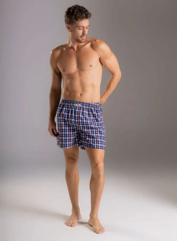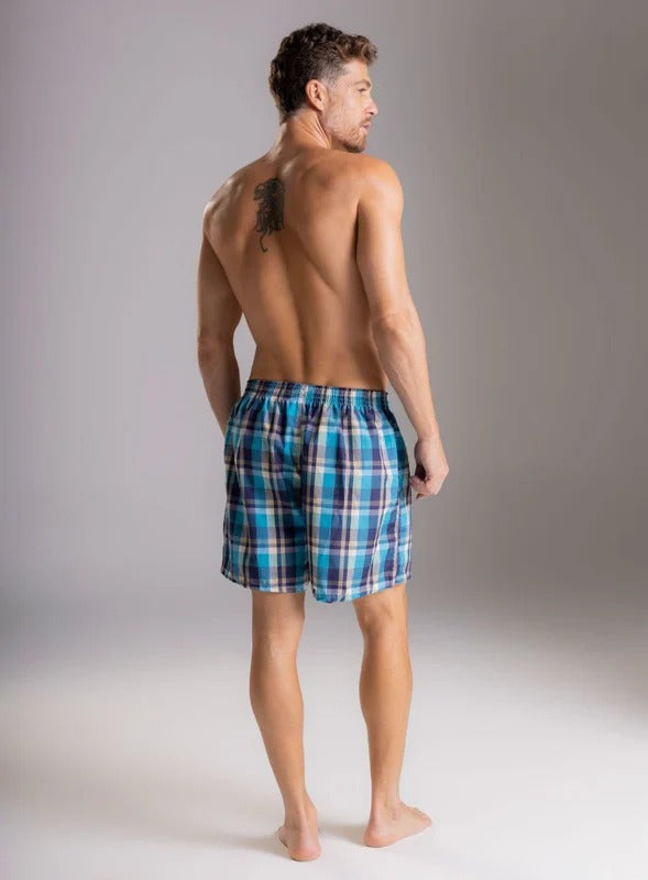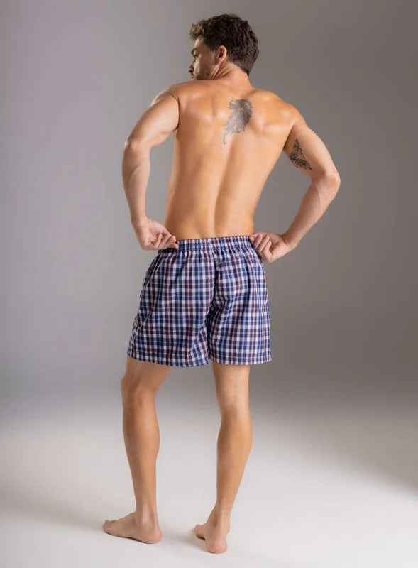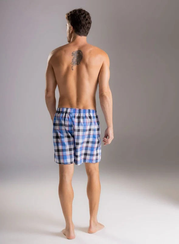 Bóxer pijamero en tela de cuadros. Elaborado en algodón. Su material es 90% poliéster y 10% elastano. Silueta ancha, talle largo con estampado y elástico en cintura.