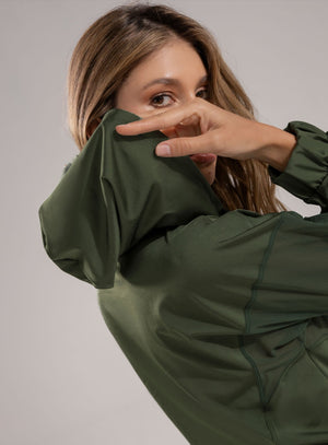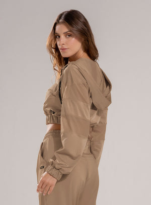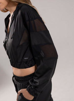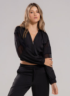 CHOMPA DEPORTIVA CON CORTES EN TELA SEMI TRANSPARENTE